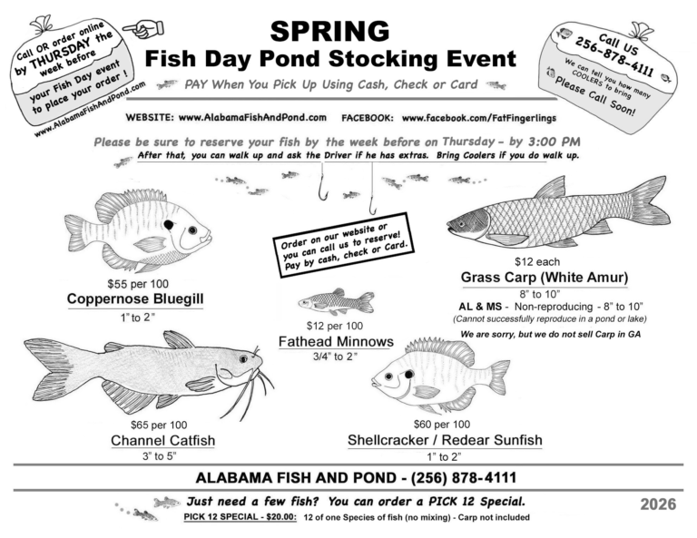 Reserve your fish using the Form below. Please scroll Down. Call the Office for assistance Or To Order at 256-878-4111.